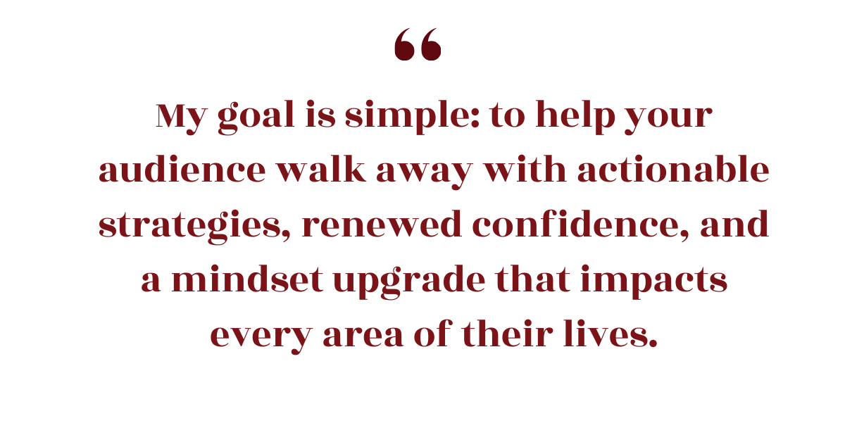 “She brought the fire and the strategy. Our team left with tools we could implement immediately—and we’re still talking about her session months later.”